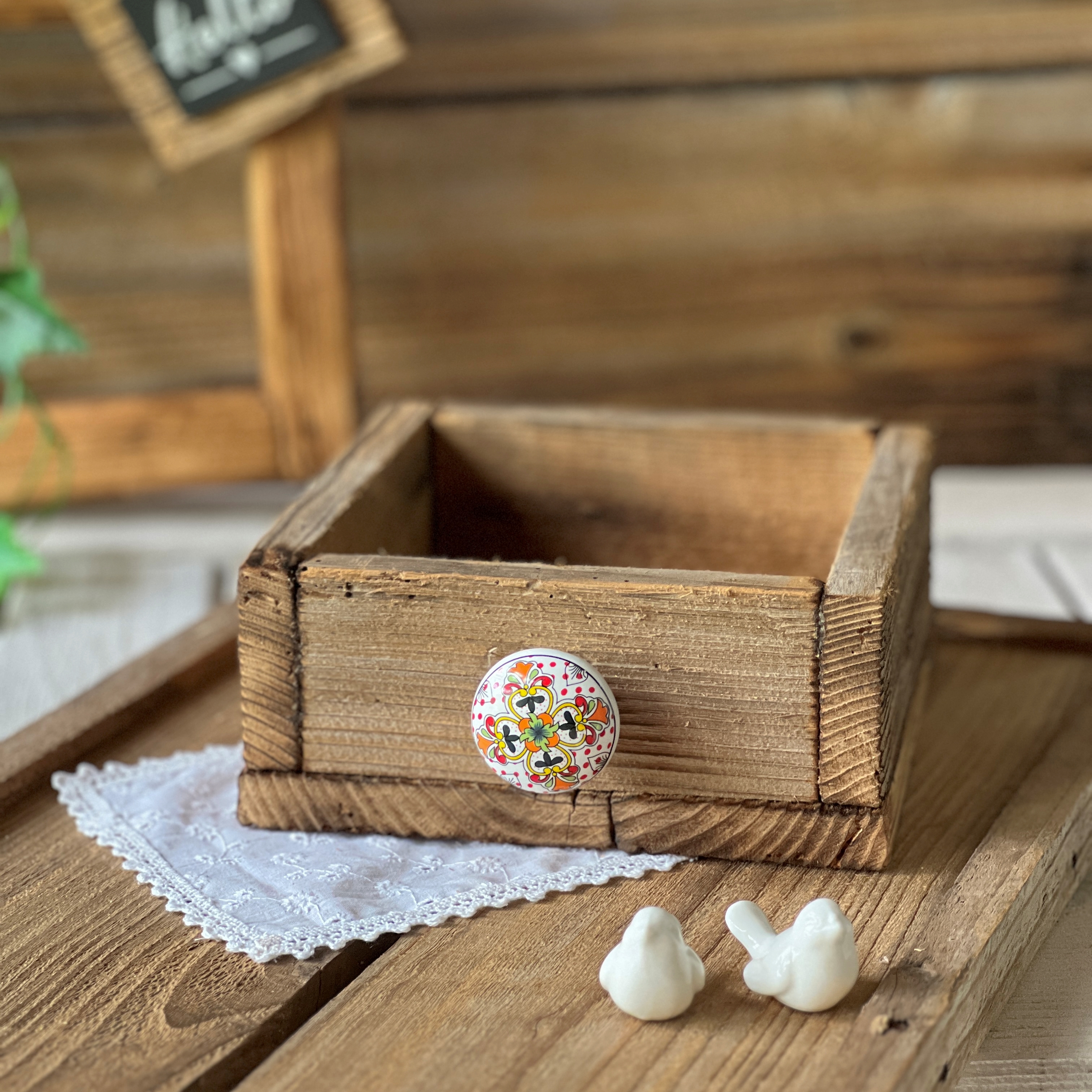 Holz neu aufgefrischt, handgemacht mit tollem Keramikgriff im antik-Look.