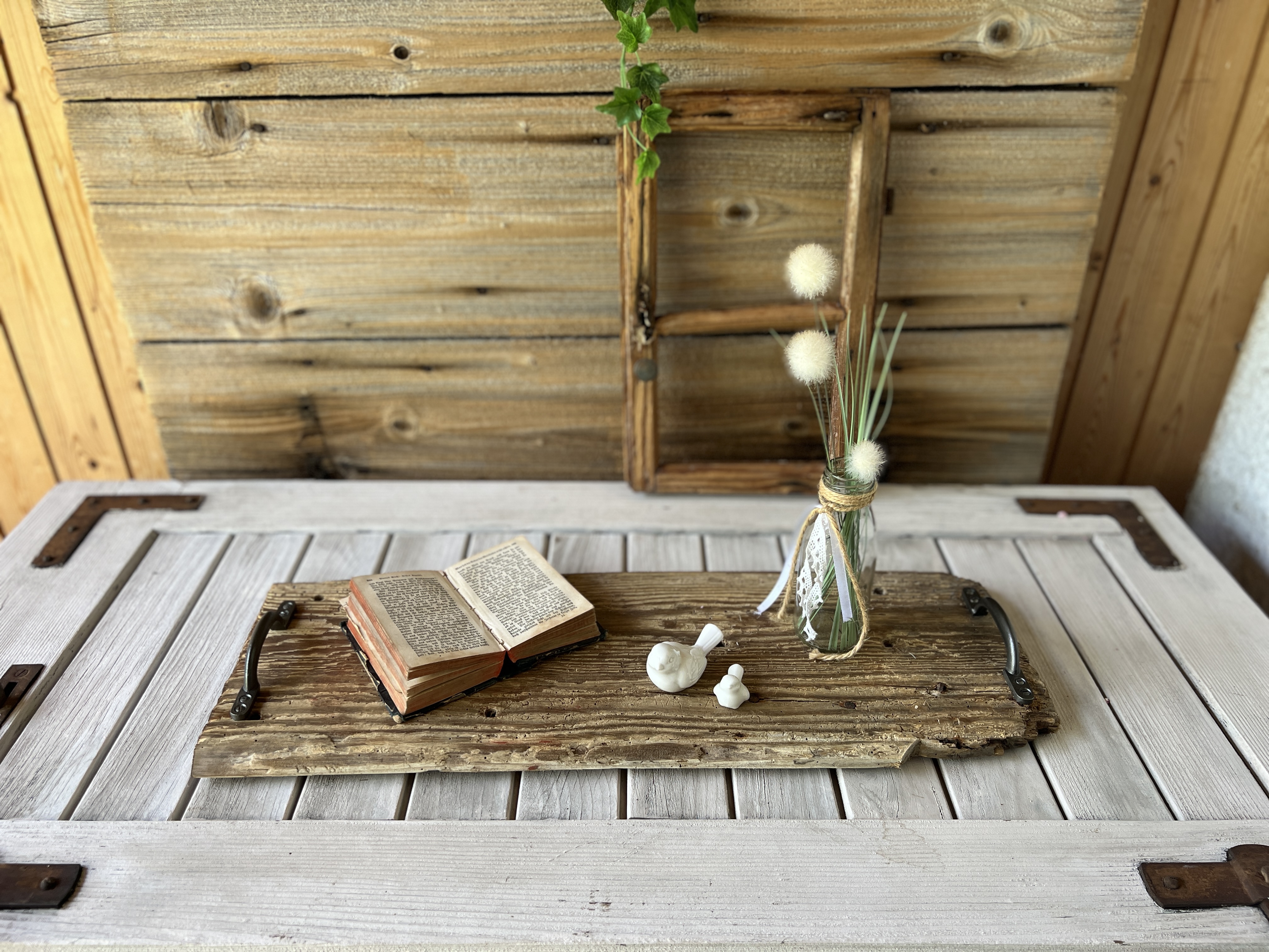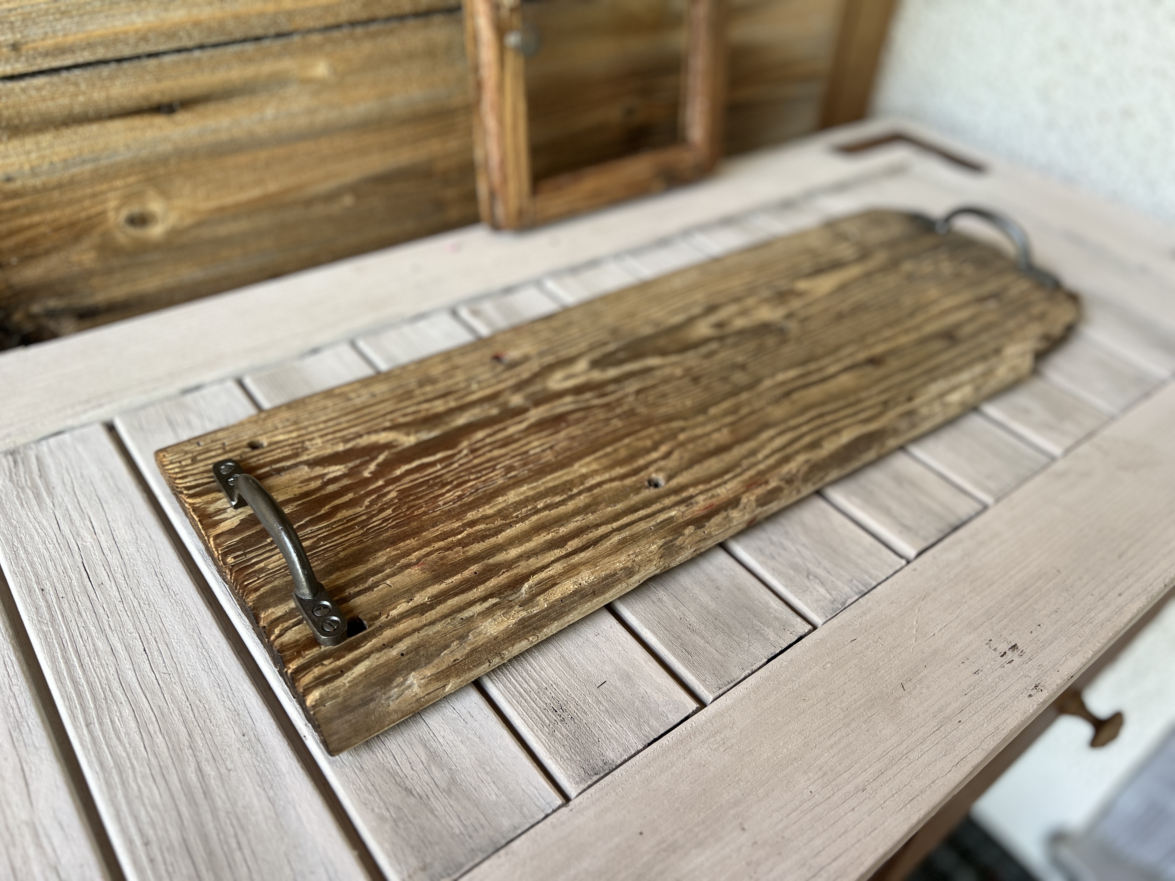 Schönes, Altholz-Tablet aus verwittertem Scheunenholz.